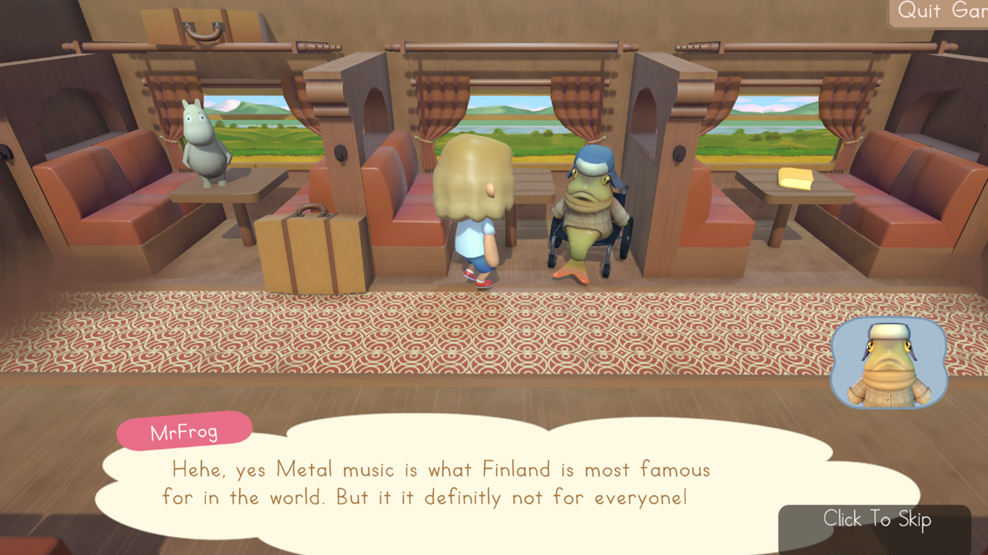 Train Tales is an educational game aimed at children that are in the process of learning English. The game takes the players on a journey through 5 countries: Spain, Mexico, Chile, Finland and Australia.