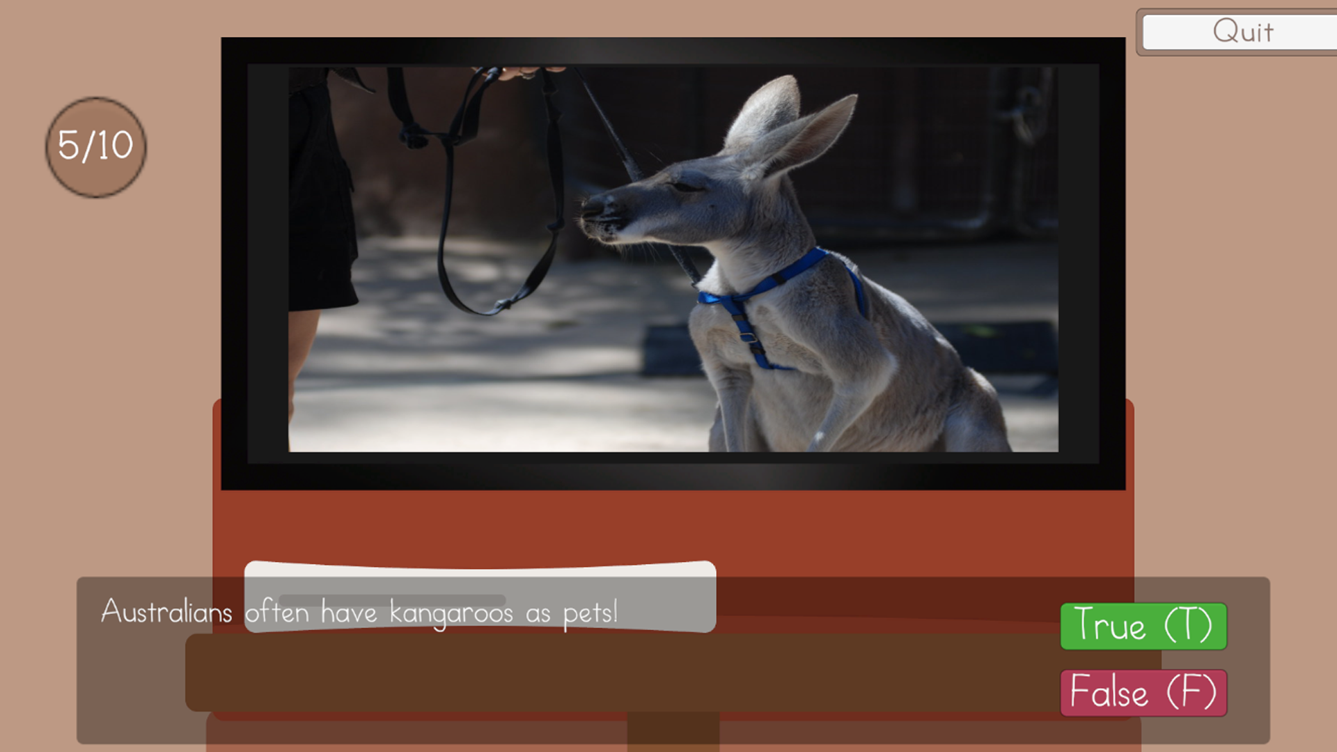 The game has the purpose of educating children and it does it quite well. The minigames are simple yet engaging and the animal friend that represents the country is a nice selling point. I think this game turned out really well, and so did the teachers considering our grades :)